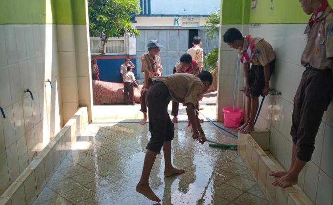 Anggota Pramuka Cakung Bantu Bersihkan Monas