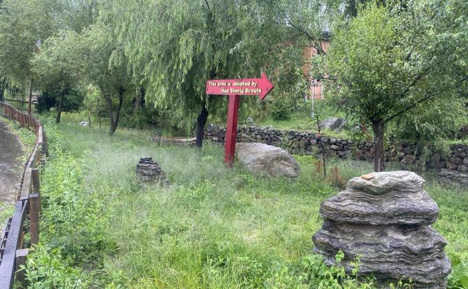 On 16th April 2021, commissioner, scout leaders of CHUNDU ARMED FORCES PUBLIC SCHOOL of HAA watering the flower garden at the ROYAL FLOWER EXHIBITION garden...
