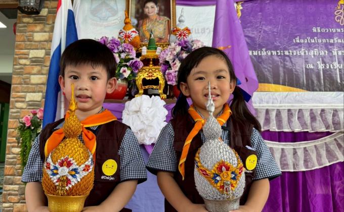 นักเรียนร่วมถวายพระพรพระราชินี