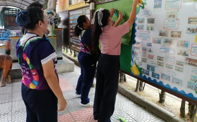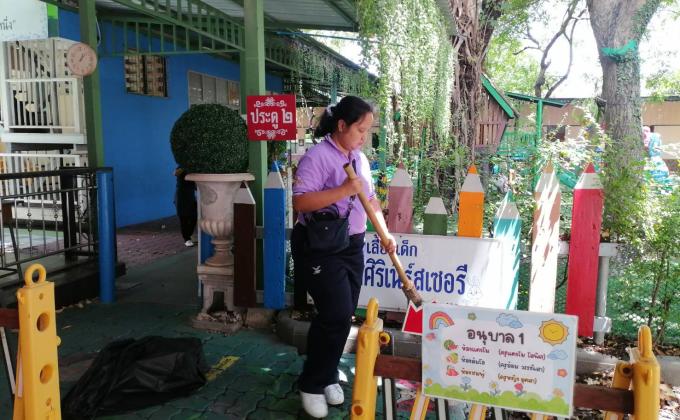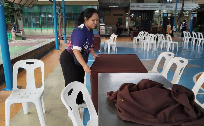 คัดกรองนักเรียนโดยการวัดไข้ก่อนเข้าโรงเรียน