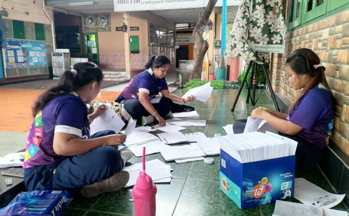 จัดหนังสือเพื่อทำห้องเรียนให้นักเรียน