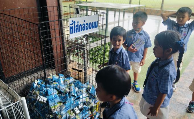 จิตอาสา ช่วยงานโรงเรียน คัดแยกขยะ เก็บขยะ