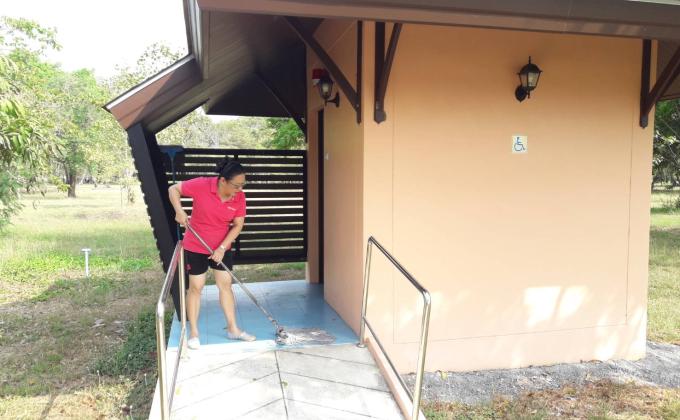 กวาดใบไม้เพื่อนำมาทำปุ๋ยหมัก