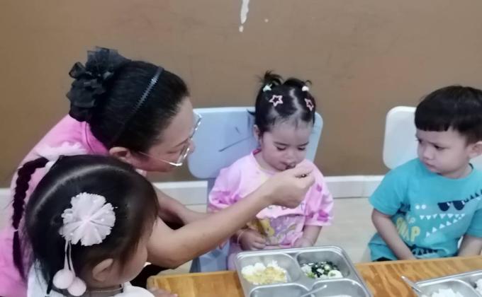 ช่วยบริการแจกนมโรงเรียนให้กับนักเรียน