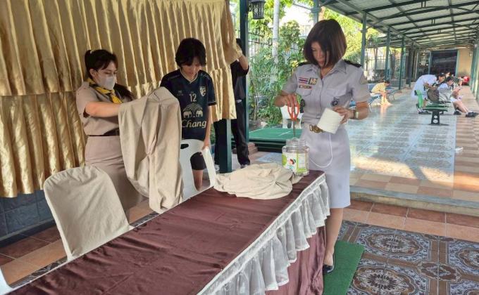 จิตอาสาจัดสถานที่ทำบุญตักบาตร