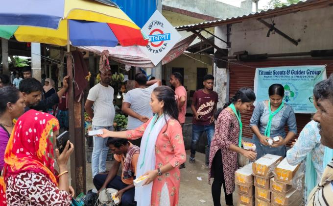 Titumir Scouts & Guide Group distributes food items to 200 flood(spring tide) affected families on 8th June,2021 at Palamari with the presence of honourable DC...