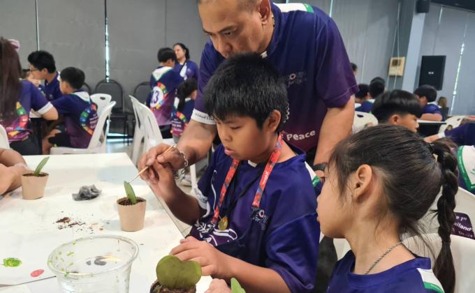 ถ่ายรูปร่วมกับนักเรียนทำการด์วันแม่