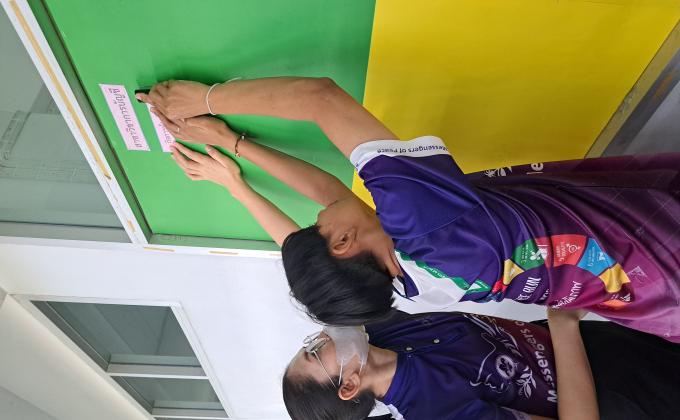 ช่วยฉีดพ่นน้ำยาฆ่าเชื้อในห้องเรียน