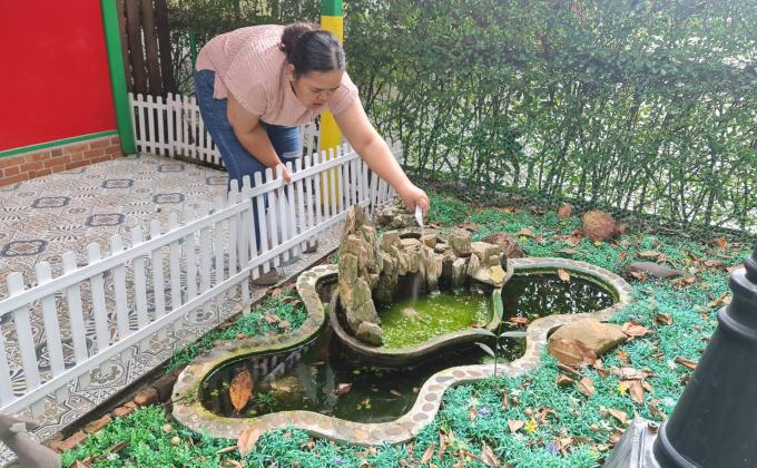 จิตอาสาเก็บเศษใบไม้บริเวรสนามเด็กเล่น