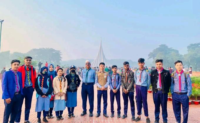 ১৬ ডিসেম্বর মহান বিজয় দিবস উদযাপন ২০২৩। বাংলাদেশ স্কাউটস রোভার অঞ্চলের আয়োজনে ঢাকার নবীনগর স্মৃতিসৌধে বাংলাদেশ স্কাউটস গাজীপুর জেলা রোভার পুস্প অর্পন করেন