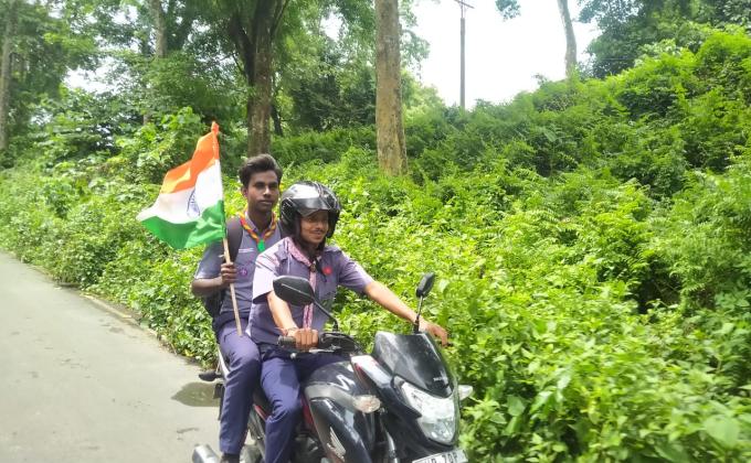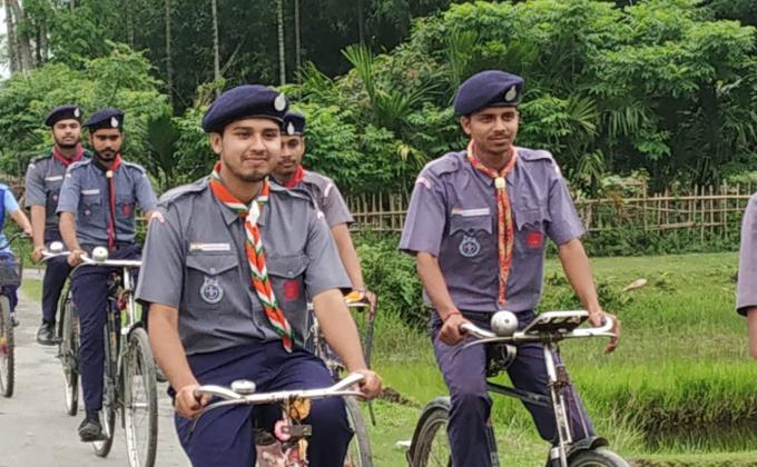 The Bharat scouts and guides , NF RAILWAY , Alipurduar District Association organized a cycle rally from divisional headquarter to Dima bridge with Nation flag