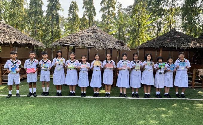 กิจกรรมการเรียนออกแบบลวดลายผ่านรูปสี่เหลี่ยมต่างๆ