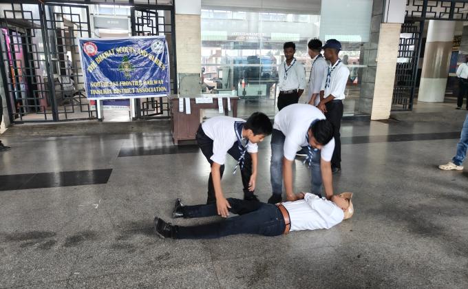 The Rovers and Sr. Scouts of The Bharat Scouts and Guides, N. F. Railway, Tinsukia District Association Performed a Nukkad Natak on the theme of “Harmful