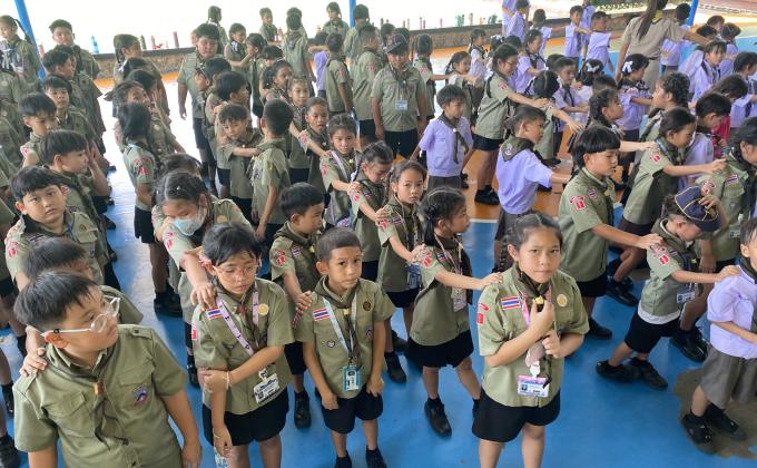 แจกอาหารว่างให้แก่นักเรียน