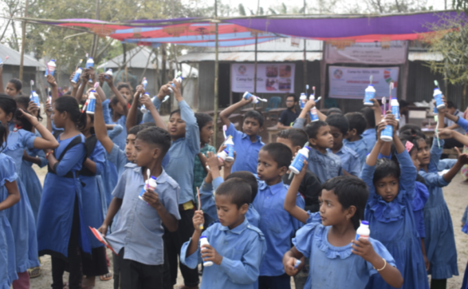 টুথ পাউডার এবং ব্রাশ বিতরণ।