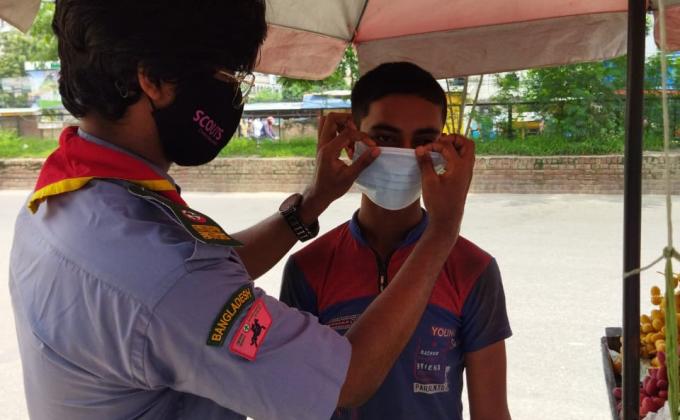 It was a project from Dhaka District Rover to free mask distribution. We distribute mask and awer people put mask and personal protection.