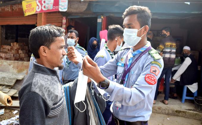 বিশ্বব্যাপী করোনা ভাইরাস মোকাবেলায় অগ্রদূত মুক্ত স্কাউট দলের সব সদস্যরা মাস্ক বিতরণ কার্যক্রমে অংশগ্রহণ করে।