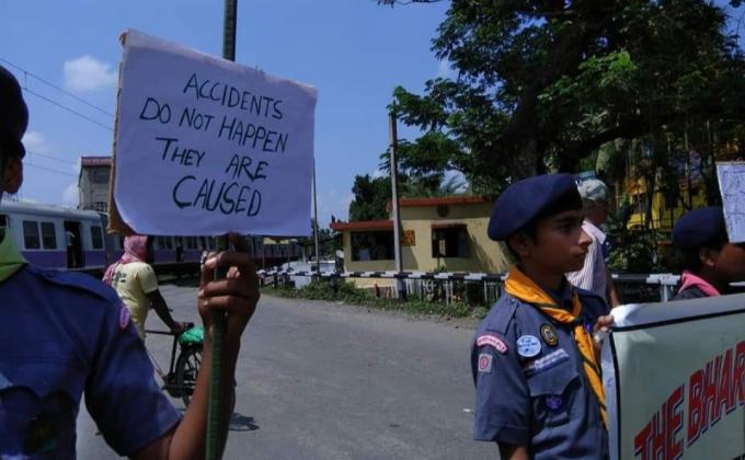 I have successfully done the Railway Level Crossing Safety Awareness Service with the help of my group and District members. In this we have done street drama...