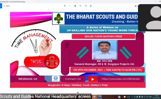 The Bharat Scouts and Guides, National Headquarters has organized a series of webinars under 'Upskilling our Nation's Young Workforce. This is Webinar -4 and