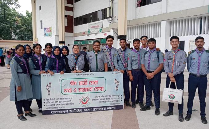 নিরাপদ ঈদ যাত্রায় স্কাউটদের ঈদযাত্রী সেবা