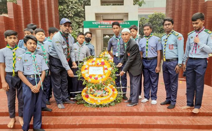 Comilla District Scouts Tribute at the Martyr's Altar at Town Hall - Members of 26 No Comilla Shikkha Board Government Model College Scout Group in