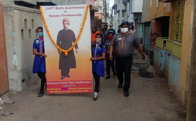 Swami Vivekanand icon of the India 158birthday celebration towards from our groups we organised small rally towards our society