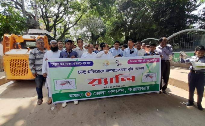 Giving poster for the awre of preventing dengue.