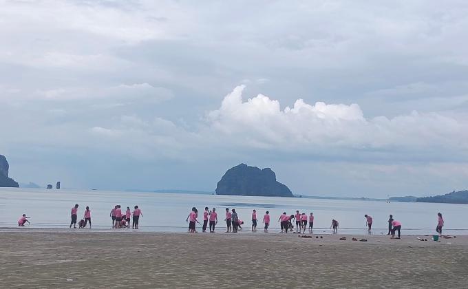 Volunteer Scouts Picking up trash at the beach.