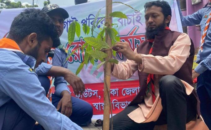 বঙ্গবন্ধু শেখ মুজিবুর রহমানের মৃত্যুবার্ষিকী ও জাতীয় শোক দিবস উপলক্ষে রোভার মো: জনি হোসেন বাংলাদেশ স্কাউটস, ঢাকা জেলা রোভার সমাজ উন্নয়ন ও স্বাস্থ্য বিভাগ