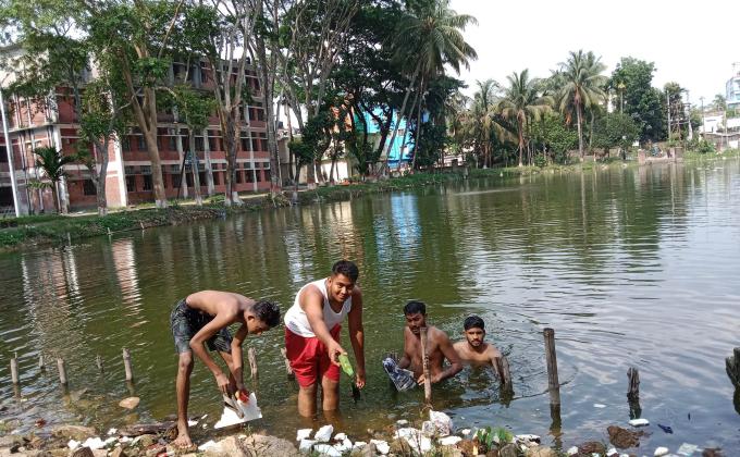 Plastic PollutionGraves # প্লাস্টিক আমাদের সবার জন্য ক্ষতিকর, আমরা বরিশাল পলিটেকনিক ইনস্টিটিউট রোভার স্কাউট গ্রুপ এর পুকুরে প্লাস্টিক পরিষ্কার করি