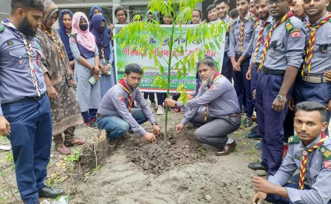 "Planting Program 2023" organized by Sheikh Lutfar Rahman Adarsh Government College Rover Scout Group with the attitude of planting trees and taking care of