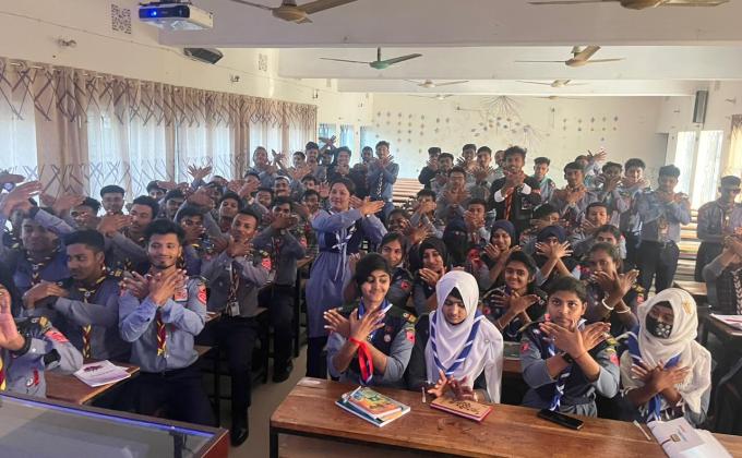 ২৭ জানুয়ারি ২০২৪ সুবর্ণজয়ন্তী রোভার মুট উপলক্ষে বাংলাদেশ স্কাউট রোভার অঞ্চল কতৃক আয়োজিত ডে ক্যাম্পে মেসেন্জার অফ পিস এবং scout for sdgs goal নিয়ে একটি সেসনের