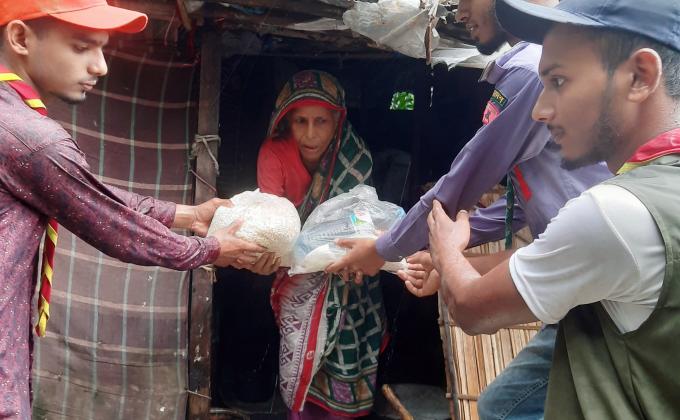 বন্যার মধ্যে ত্রান বিতরন