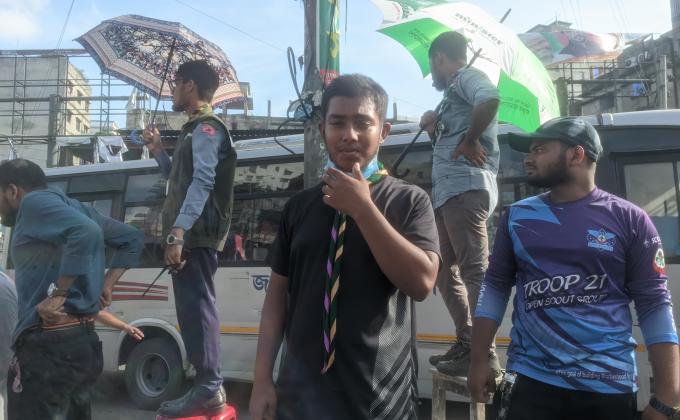 In the absence of the government, law and order in our country has generally broken down. That is why all of us scouts in Dhaka have joined the traffic service...