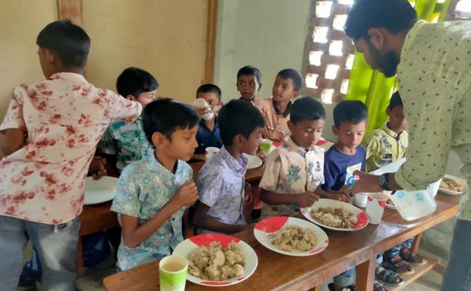 স্কুলের ছোট বাচ্চা দের একবেলা খাবার খাইয়েছিলাম। এক ডক্টর এর উদ্যেগে এবং তার অর্থায়নে আমরা উক্ত প্রকল্পটি সম্পন্ন করেছিলাম এখানে একবেলা খাবার স্কুলের ছোট ছোট
