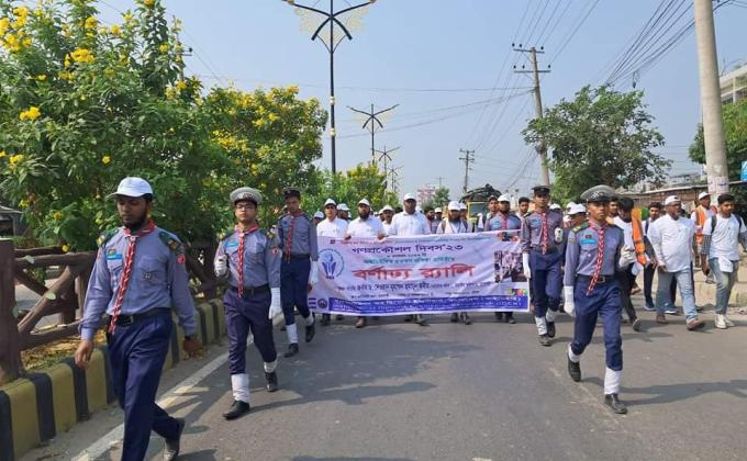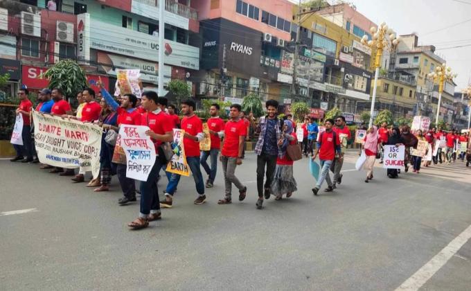 Members of Barendra Youth Forum and some Rover Scouts on 21 November conducted climate march at Zero Point More area of Rajshahi. They are doing this march
