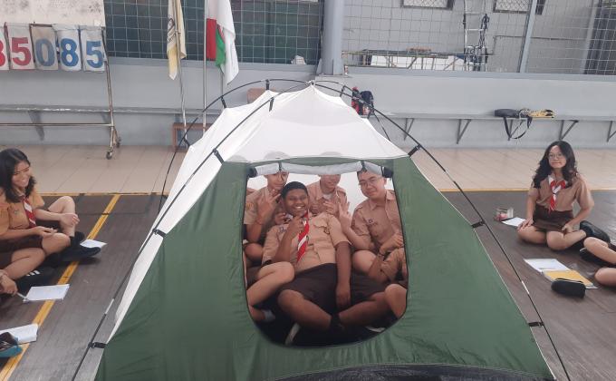 Pembinaan terhadap peserta dengan membiasakan mendirikan dan merapihkan tenda sebagai salah satu bentuk pelatihan keterampilan bertahan hidup dan memberikan