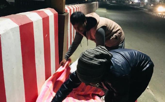 Distributing winter clothing to those in need.