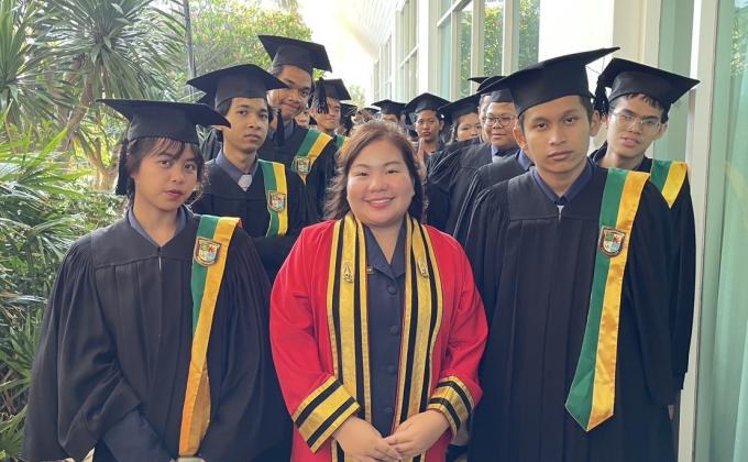 เดิน นำแถวนักเรียน สาขาคอมพิวเตอร์ธุรกิจ ในกิจกรรมรับประกาศนียบัตร