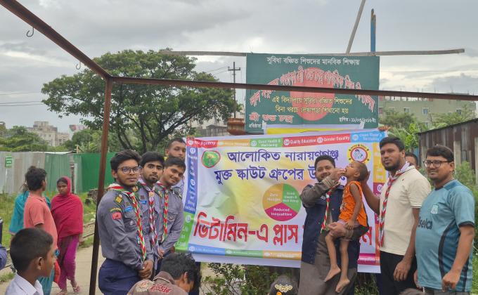 আমরা “আলোকিত নারায়ণগঞ্জ মুক্ত স্কাউট গ্রুপ” এর সদস্যরা চাষাড়া রেলওয়ে স্টেশন, নারায়ণগঞ্জে অবস্থিত একটি পথশিশু স্কুলে “ভিটামিন ‘এ’ ও পুষ্টি সচেতনতামূলক...