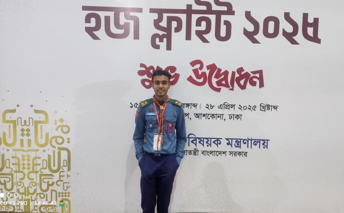 The month-long "Hajj Camp 2025" is being conducted by Bangladesh Scouts at the Hajj Office of the Ministry of Religious Affairs in Ashkona, Dhaka, under the