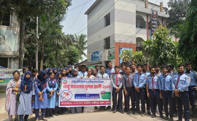""Dengue Awareness Rally 2023"" Currently, dengue has become an epidemic. Dengue Awareness Rally 2023 was organized by Gazipur District Rover to kill Aedes