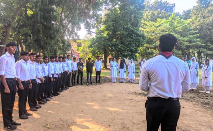 Weekly crew-meeting 08/11/ 2023 Kazi Azimuddin College Rover Scout Group. Subject: New Rover Companion Orientation and Pre-Preparation for Great Victory Day