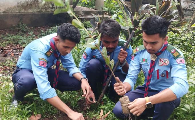 জাতীয় বৃক্ষ রোপন অভিযান -২০২৪ উপলক্ষে কাজী আজিমউদ্দিন কলেজ রোভার ইউনিটের উদ্যোগে কলেজ ক্যাম্পাসে শিক্ষার্থীদের মাঝে চারা বিতরণ এবং বৃক্ষ রোপন কার্যক্রমে অংশ