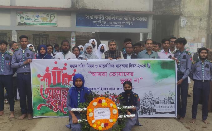 ২১শে ফেব্রুয়ারী ভাষা শহীদের স্মরণে সরকারি কালিগন্জ শ্রমিক কলেজ রোভার স্কাউট কর্তৃক শ্রদ্ধাঞ্জলি দেওয়া হয়। মাতৃভাষার আন্তর্জাতিক মঞ্চে স্বীকৃতি খুব পুরনো কথা