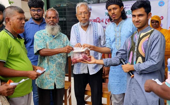 দুস্থ মানুষের মাঝে কুরবানির মাংস বিতরন