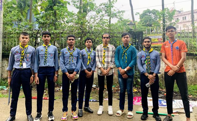 "The Scouts, always vigilant during Bangladesh's critical moments." When sudden floods put the lives of the people in North Bengal in danger, Bangladesh Scouts