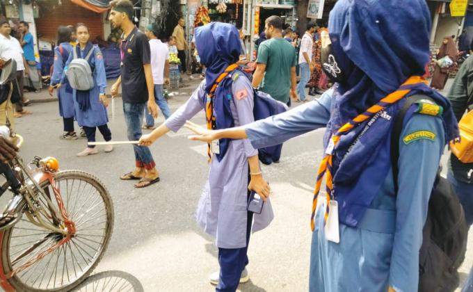 বৈষম্য বিরোধী ছাত্র আন্দোলনের পর পুলিশের অনুপস্থিতিতে বগুড়া পলিটেকনিক ইন্সটিটিউট রোভার স্কাউট গ্রুপের চৌকস রোভাররা ট্রাফিক যানজট নিয়ন্ত্রণে কাজ করেছে।