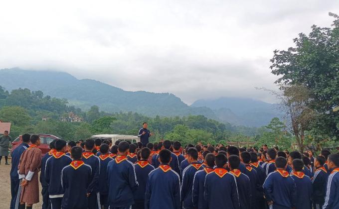 First, all the teachers and students gathered at the MPH to receive the chief guest, who was escorted to light the butter lamp. This was followed by the