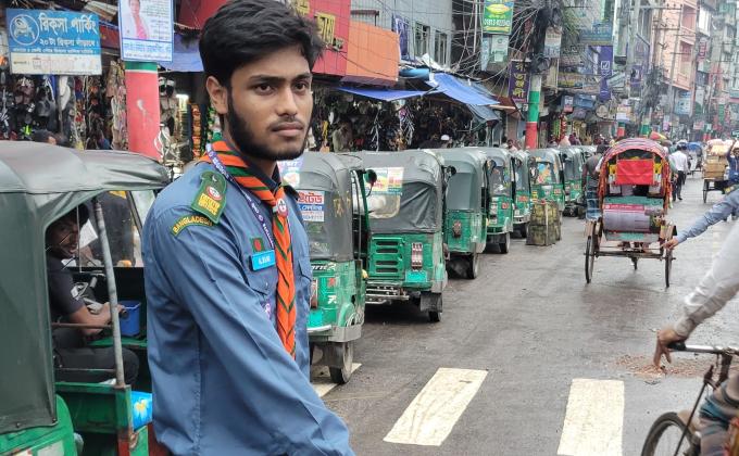 ২০২৪ সালের আগষ্টে দেশের অস্থিতিশীল পরিস্থিতিতে, ট্রাফিক পুলিশের অনুপস্থিতিতে সাধারণ মানুষ যানজটসহ নানা ধরনের ভোগান্তিতে পড়ে। এই পরিস্থিতিতে একজন রোভার স্কাউট...